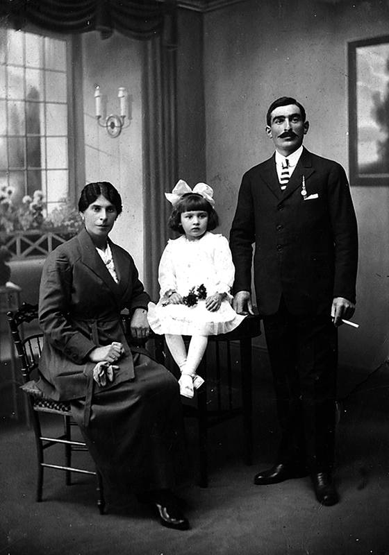 Azalpena: Erretratua. Martina Gandiaga jesarrita, Andonegi Torreko Angel Iruretaguena, eta erdian hauen alaba Ageda, neska txiki.