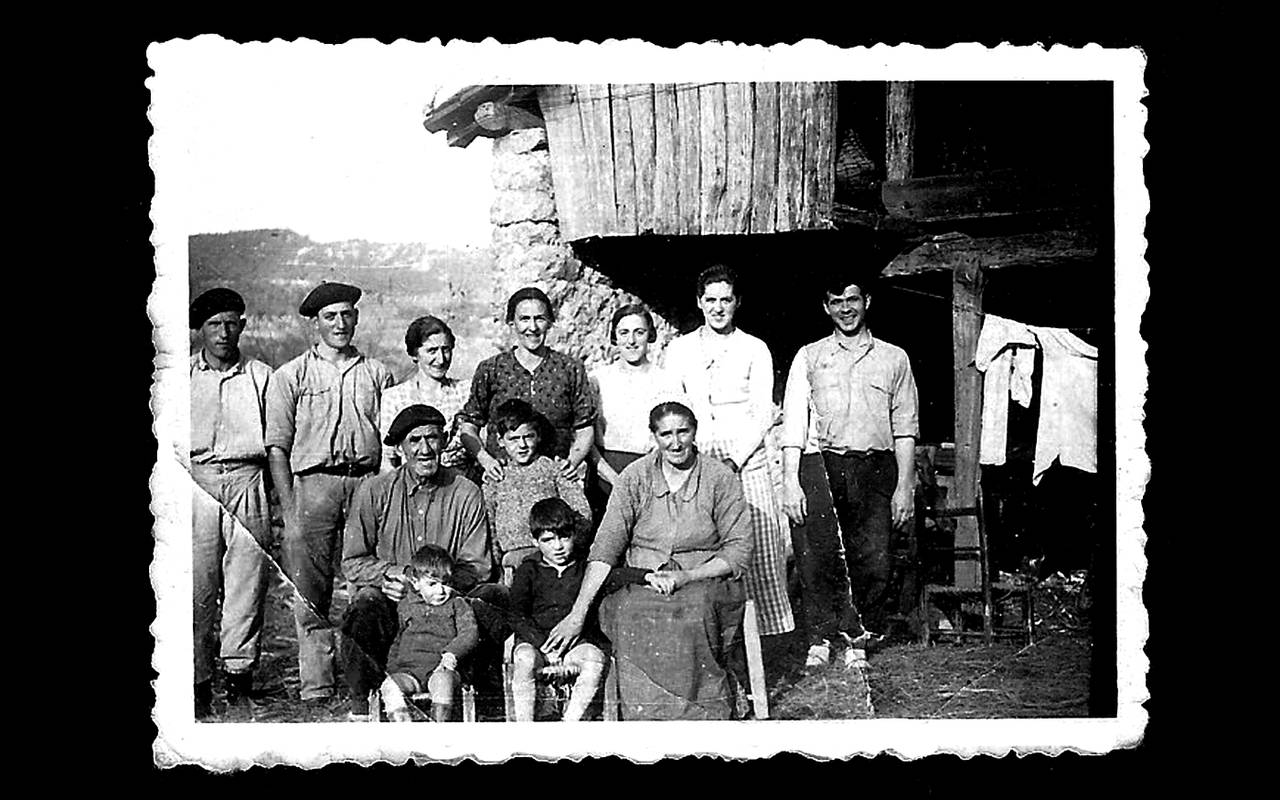 Azalpena: Milloiko ermitan Aldeko familia. Juan Txurruka, Kleto, Juana, Petra, Matea eta Hilaria Laka anai-arrebak eta Jose Mari …