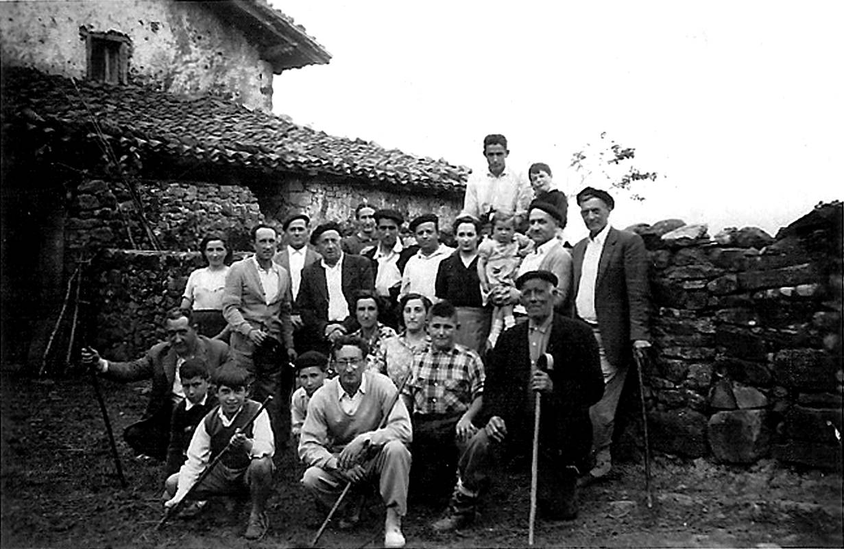Antzai baserrian, ur tunelaren montxorra. Langile eta etxekoen taldeko argazkia