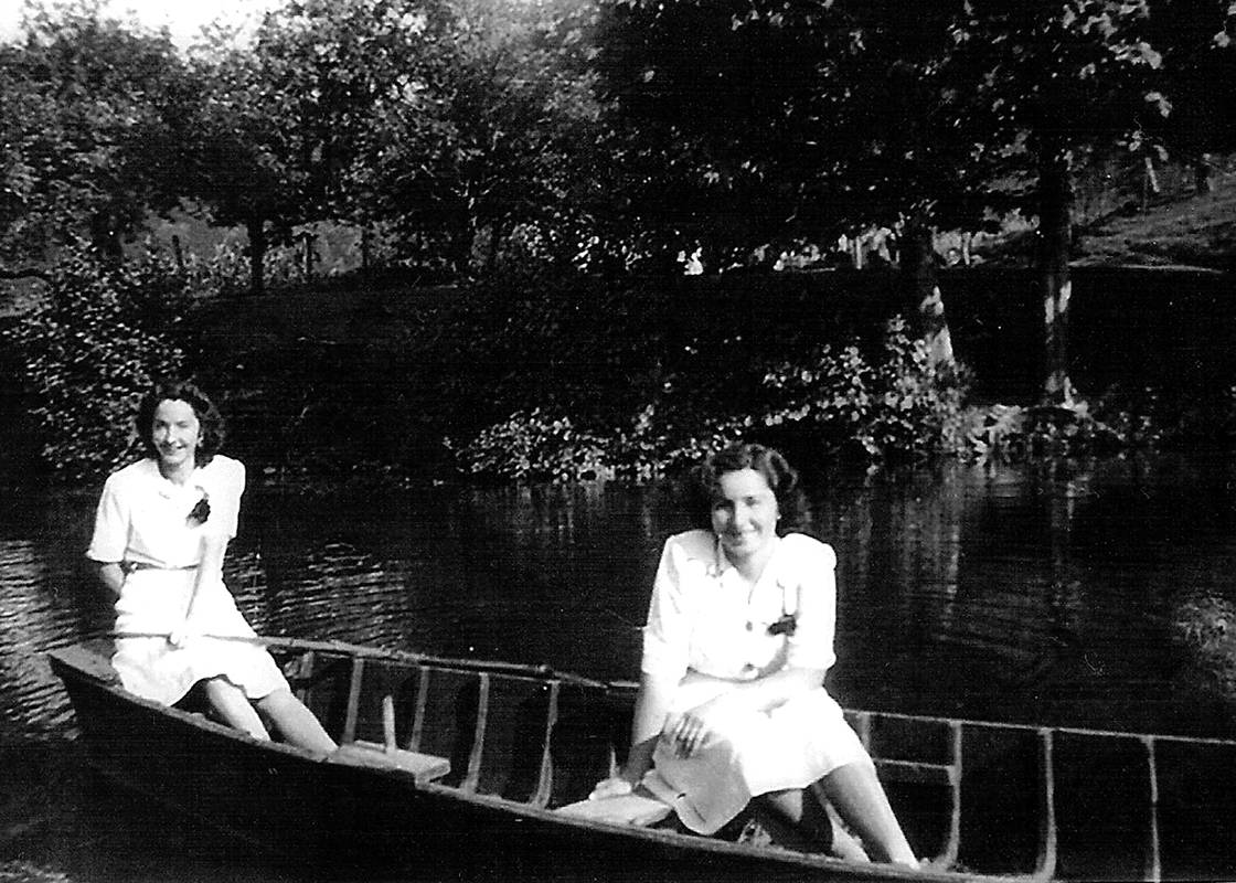 Antxiku eta Zametiz artean, Mari eta Ramoni Gojenola Bastida ahizpak errekan, txanelean.