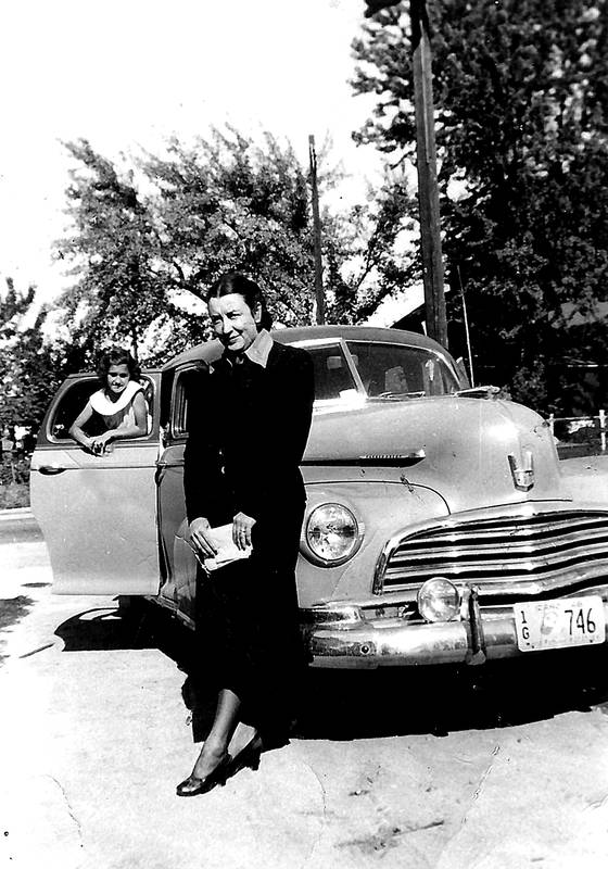 Idahon, (AEB-n). Maria Galdos (Kontxa Kaltzakortaren lehengusina), tente, autoaren aurrean.