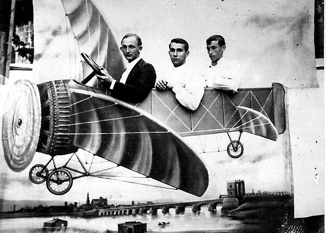 Ontario, Oregonen (AEB-n). J.Ramon Eizagirre Kaltzakorta erdian bi lagunekin, gezurretako abioneta batean