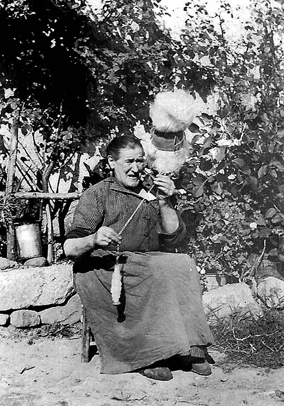 Harigintza. Torre baserrian, kanpoko aldean jesarrita, Maria Andresa Argoitia goruetan.