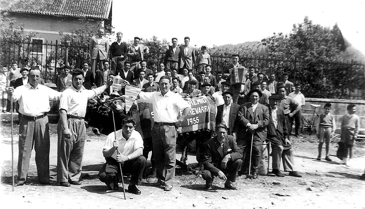 Idi-probak. Besteak beste, Patxi Urrutia, Txokolate, Patxi Argoitia, Zabaleta Txikia, Inazio Gorostola (idi jabea makurtuta akuilu gabe), bere aita Jose Luis, Jose Arriola eta Fernando Gandiaga Perran. Atzean: Pedro Gorostola, Marcelino Goikoetxea, Benito Saizar, Juan Aranzeta, Esteban Cienfuegos, Guillermo Urresti, Julian Argoitia, Felix Gorostola, Pedro Basterretxea, Hilario Sololuze, Gregorio Mugartegi, Angel Urrutia, J. Ramon Eizagirre eta Patxi Eizagirre.