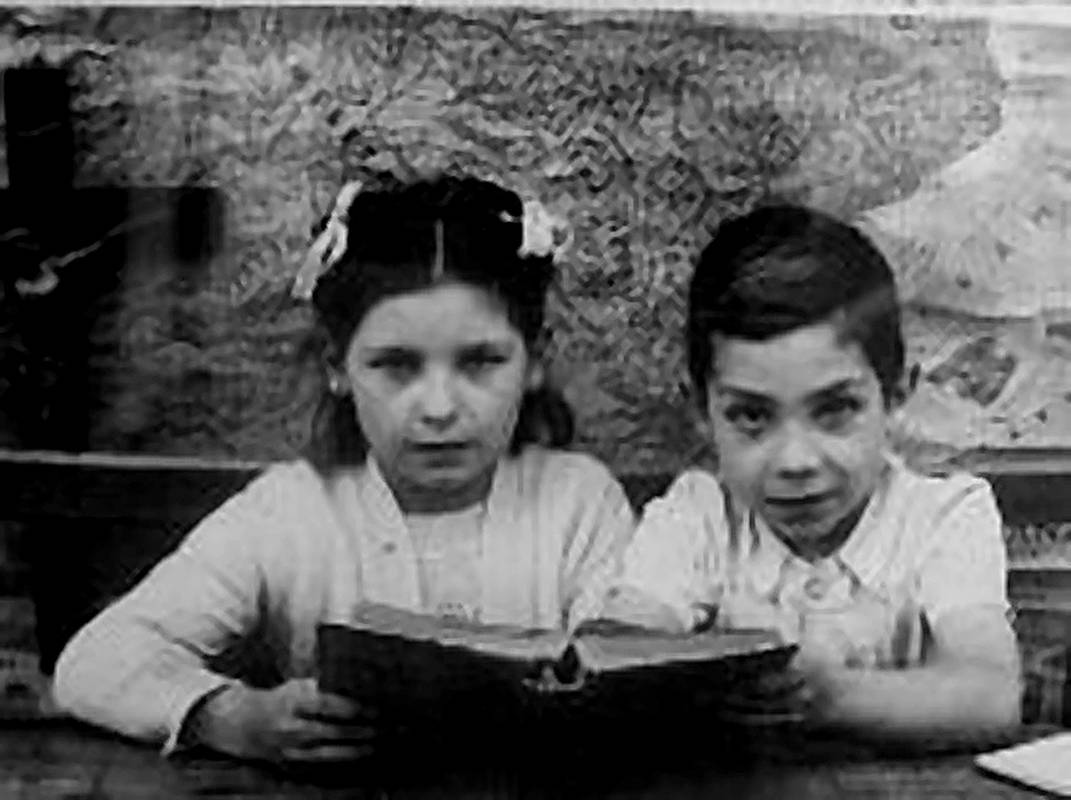 Erretratua. Ikasmahaian, kamarari begira eta liburua eskuetan, Mª Karmen eta Inazio Mantzisidor