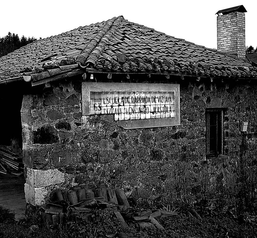 Asterrikako auzo-eskola zenaren eraikinean, idazkun zaharra, apurtuta.