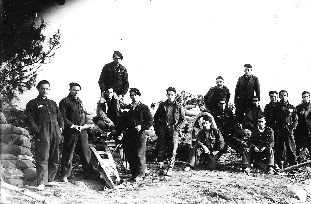1936ko gerra. Laka Goiko edo Zeleta baserrien artean (Berriatua). Arana Goiri Batailoiko Leizaola konpainiako gudariak.