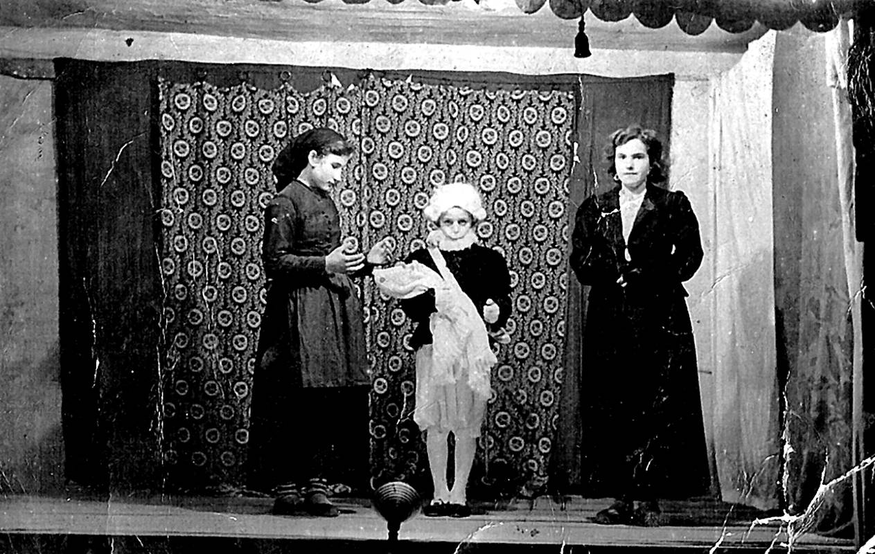 Antzerkia egiten: Lorenza Barinagarrementeria, Patxi Kaltzakorta Goikoetxe eta Miren Espilla.