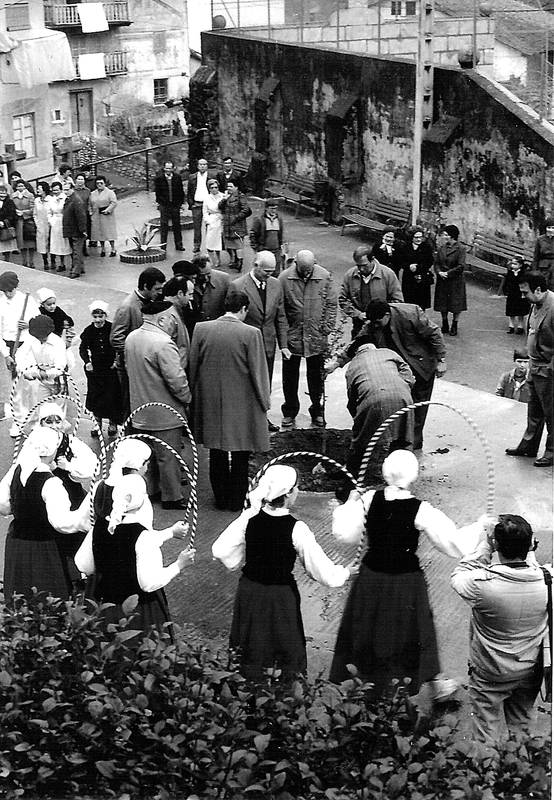 Jose Mª Makua, Anton Aurre eta Joseba Arregi agintariak besteak beste, arta arbola zaharraren landare barria jartzen eleizpe aurrean.