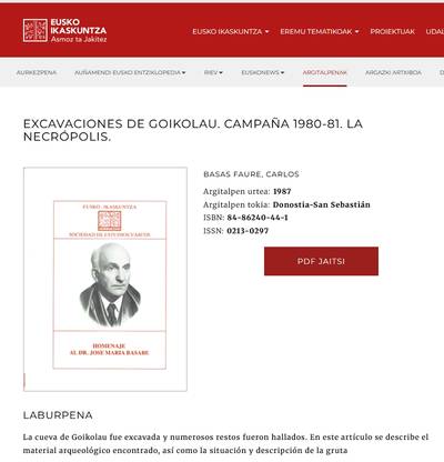 Excavaciones de Goikolau. Campaña 1980-81. La necrópolis.