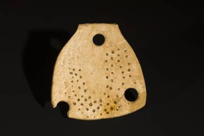 Hezurrezko plaka bat da, zulatua eta puntuekin apaindua, zaldi-eskapula zati batekin egina (Equus caballus). Plaka ia trapezoidala da, 4,8 cm luze, 4,5 cm zabal eta 0,03 cm lodi. Hiru alde kurbatu ditu eta bat zuzena (goikoa), hiru zulo zirkularrekin, bat goiko aldean eta beste biak oinarriaren muturretan. Bere artean gutxi gorabehera paraleloak diren lau lerrotan ordenatutako puntilatu batez apainduta dago, zirkuluerdi ia zentrokideak osatuz. Guztira 93 puntu zenbatzen ditu, 15, 20, 27 eta 21eko lau serietan banatuta, hurrenez hurren.