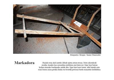 koilara itxurako burdinazko atalak ditu. Egur luze horri lotuta, alde batetik uztarriari lotzen zaion pertika dauka eta bestetik pertsona batek eramateko heldulekua.